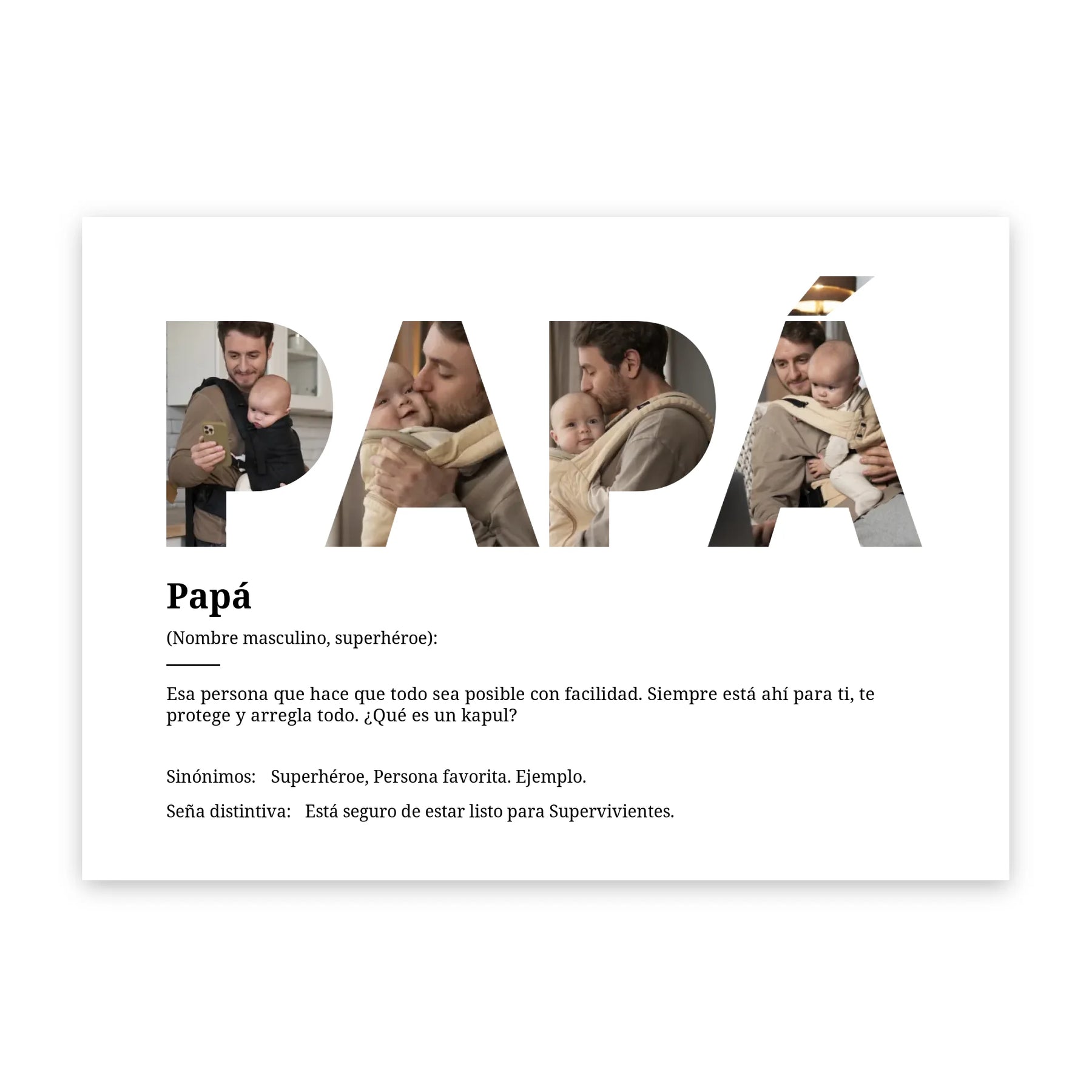 Demuéstrale a tu padre lo especial que es con nuestro magnífico póster personalizado. Este regalo único y atento le hará sentir todo tu amor y gratitud. Destaca los preciosos momentos que habéis compartido juntos añadiendo una descripción única de tu padre y una foto que signifique mucho para ti. Expresa tu amor filial de forma personal y memorable con este regalo personalizado que demostrará lo importante que es en tu vida.