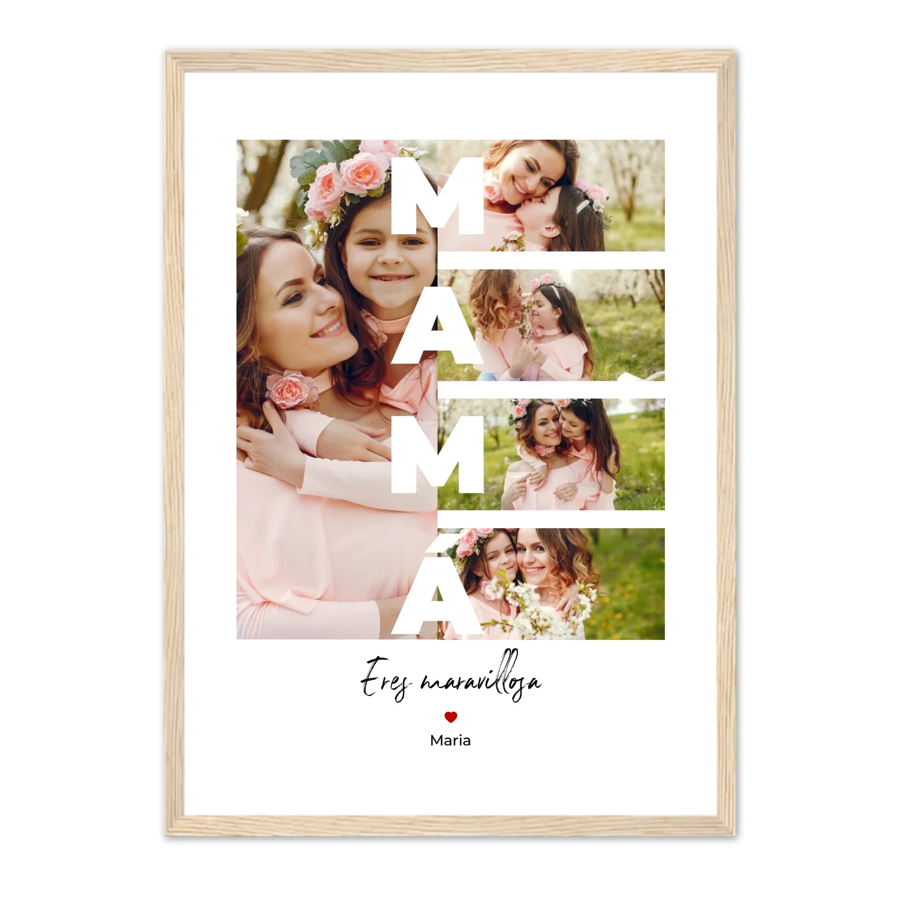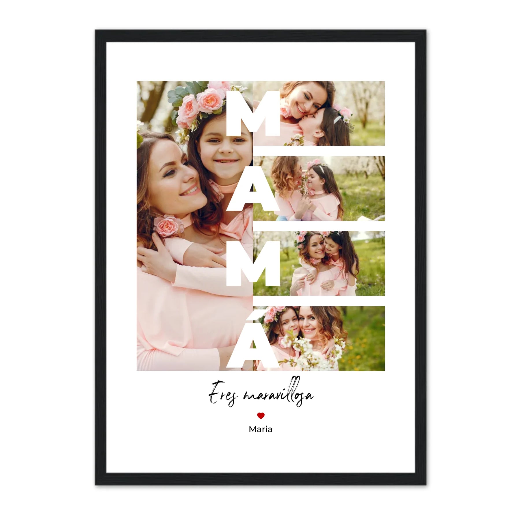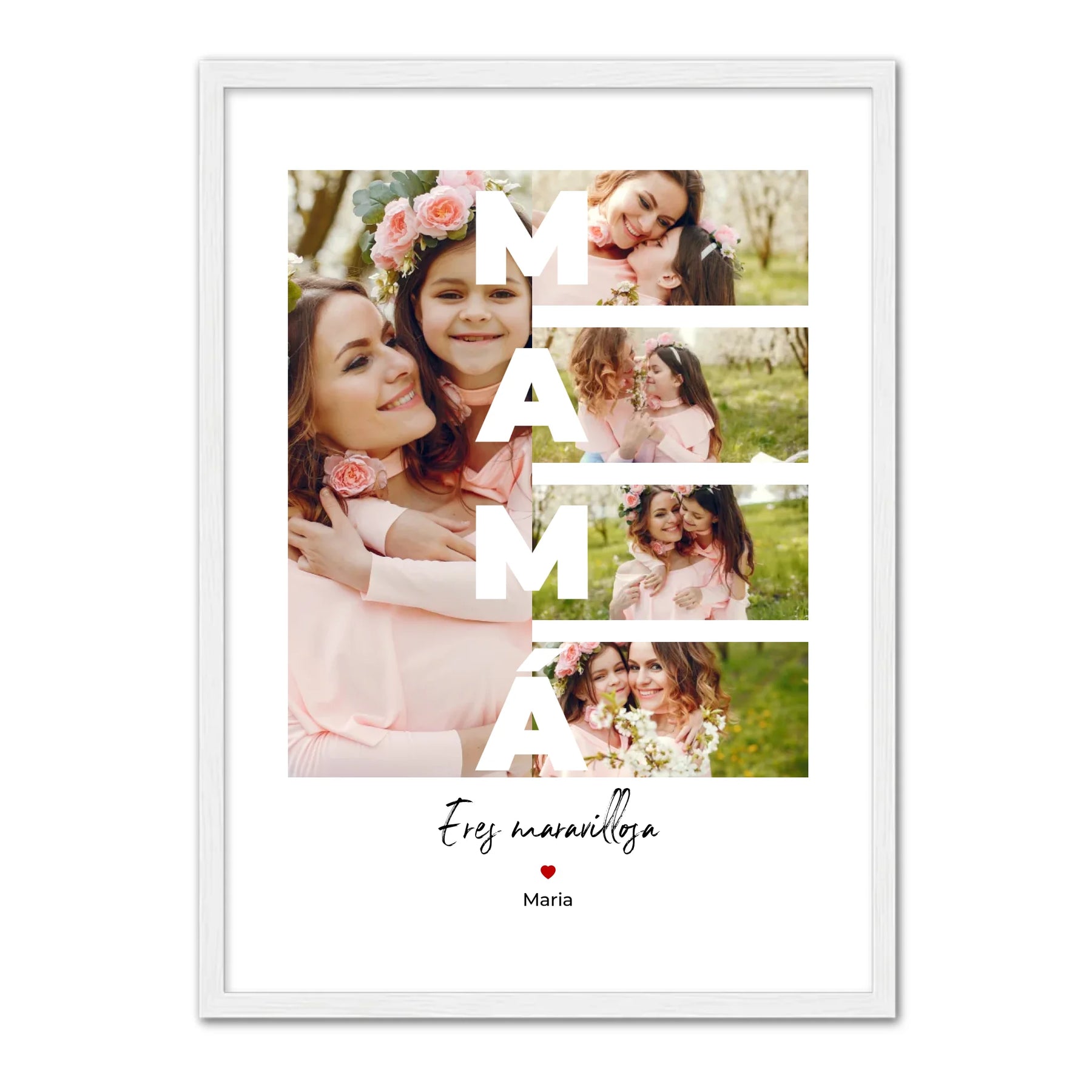 Captura los momentos más entrañables de tu familia con este precioso collage de fotos personalizado. No es sólo un regalo, es un testimonio de la alegría y el amor que compartes con tu increíble madre. Perfecto para su escritorio, salón o dormitorio, le recordará cada día lo mucho que significa para ti. Pídelo hoy y haz que su día sea inolvidable.