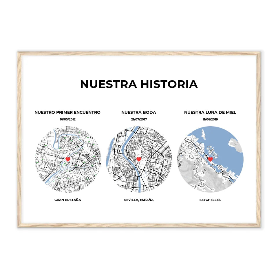 Nuestro póster "Nuestra historia" es la forma más romántica de contar una historia. Este póster con un bonito diseño de mapa celebra el amor en todas sus formas y puede personalizarse con un lugar, un texto y una forma especiales, lo que lo convierte en un regalo inolvidable que conserva los recuerdos a lo largo del tiempo.