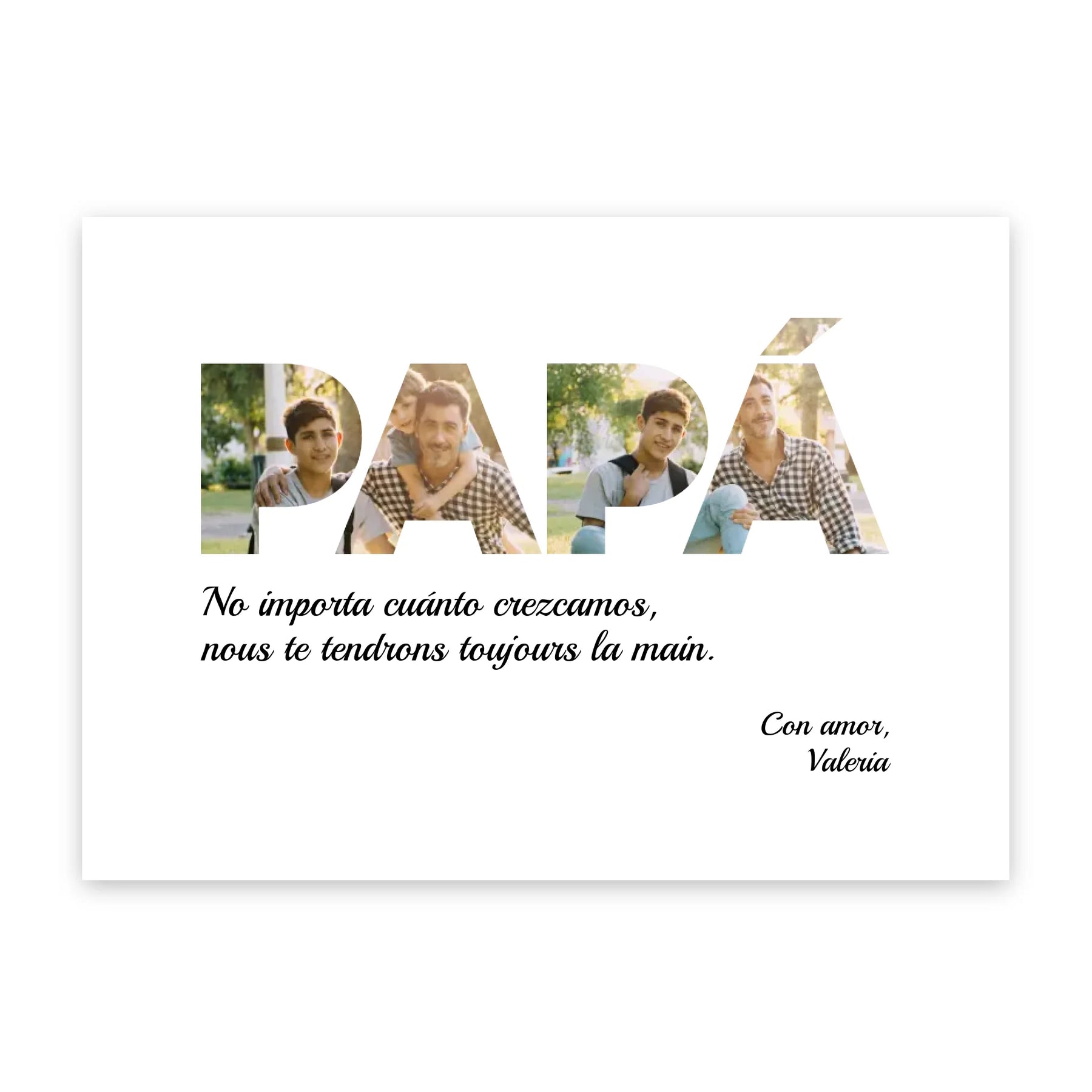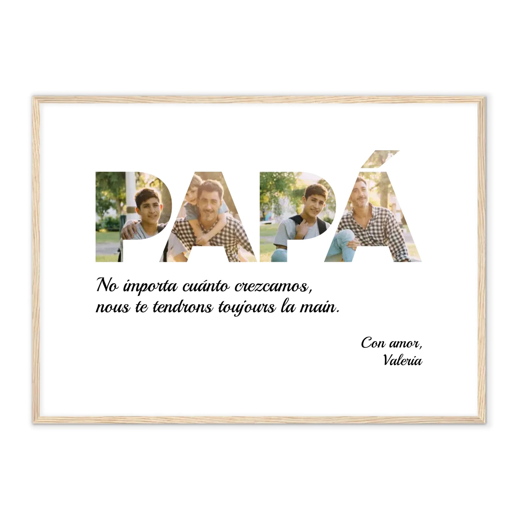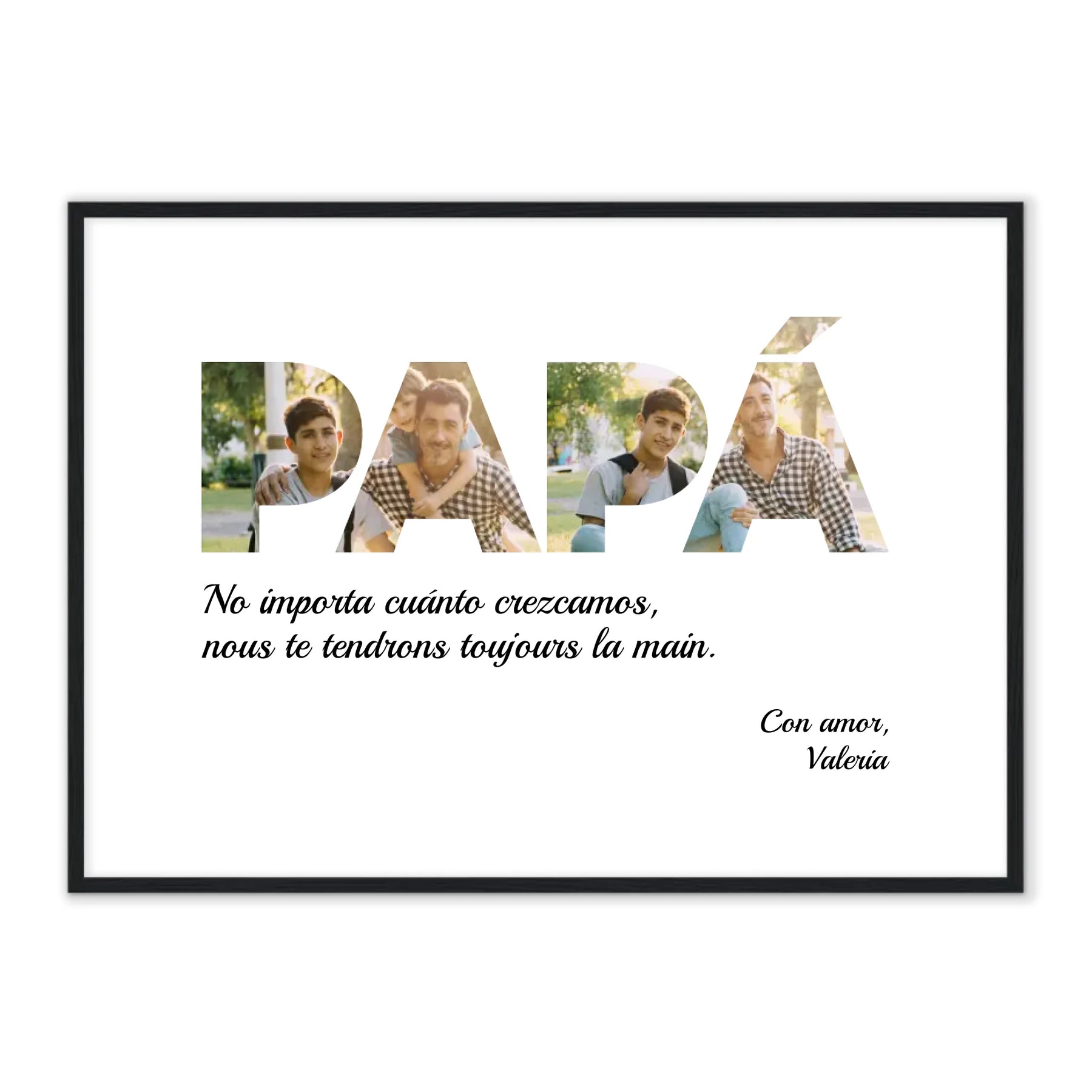 Inmortaliza los momentos más entrañables de tu familia con este magnífico collage de fotos personalizado. No es sólo un regalo, es un testimonio de la alegría y el amor que compartes con tu increíble padre. Perfecto para su escritorio, salón o dormitorio, le recordará cada día lo mucho que significa para ti. Pídelo hoy y haz que su día sea inolvidable.